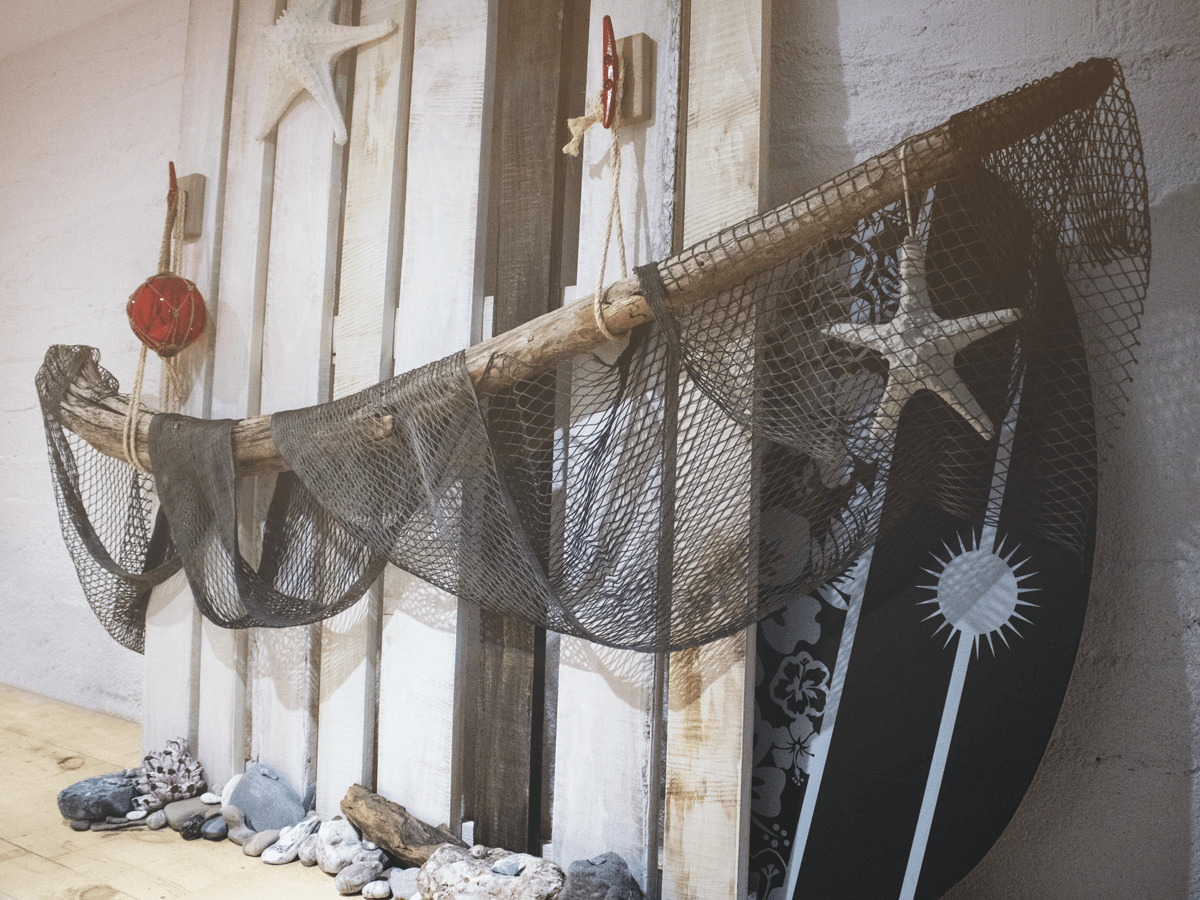 J’ai trouvé cette branche sur le bord de la mer et j’ai décidé d’en faire un élément décoratif. L’ajout de différents éléments rendent bien le look bord de mer que je voulais.