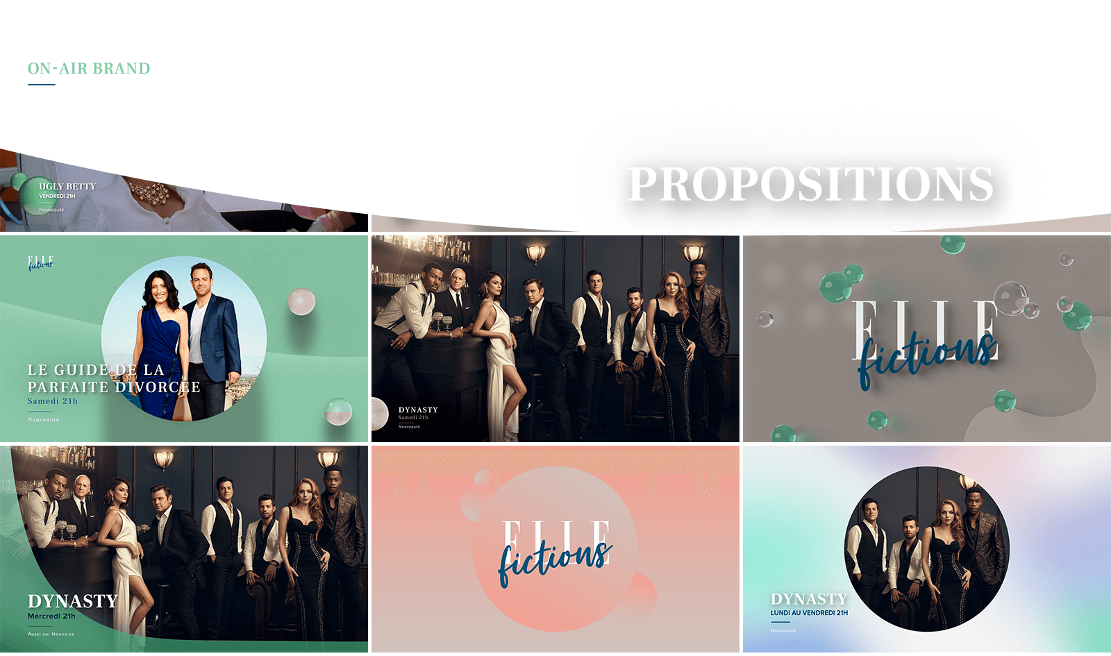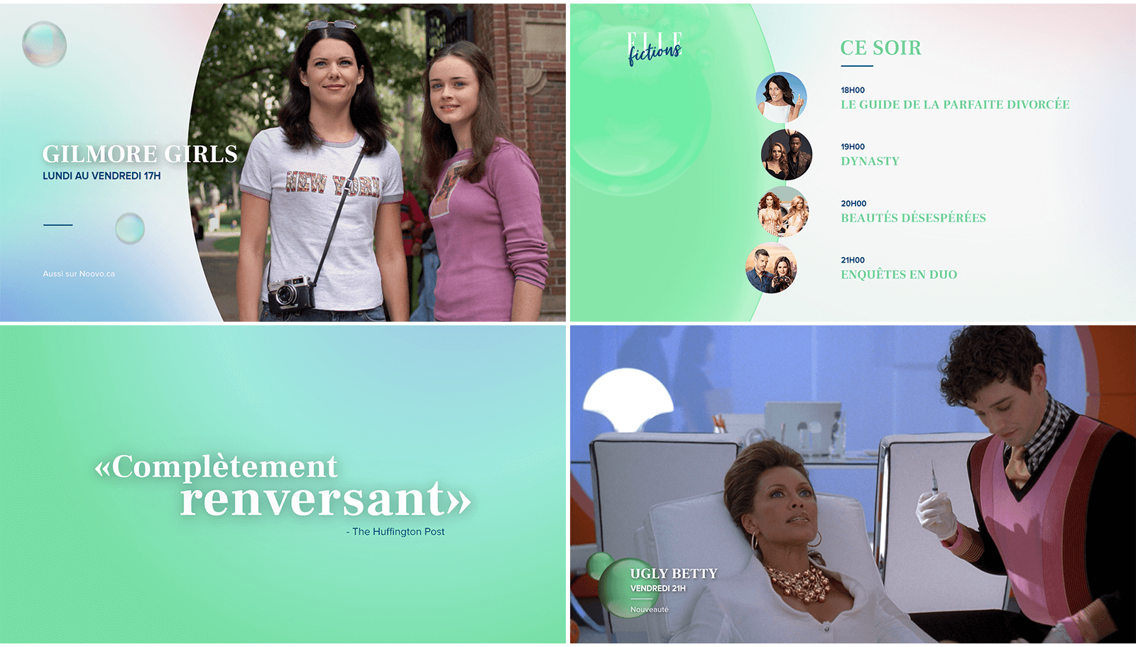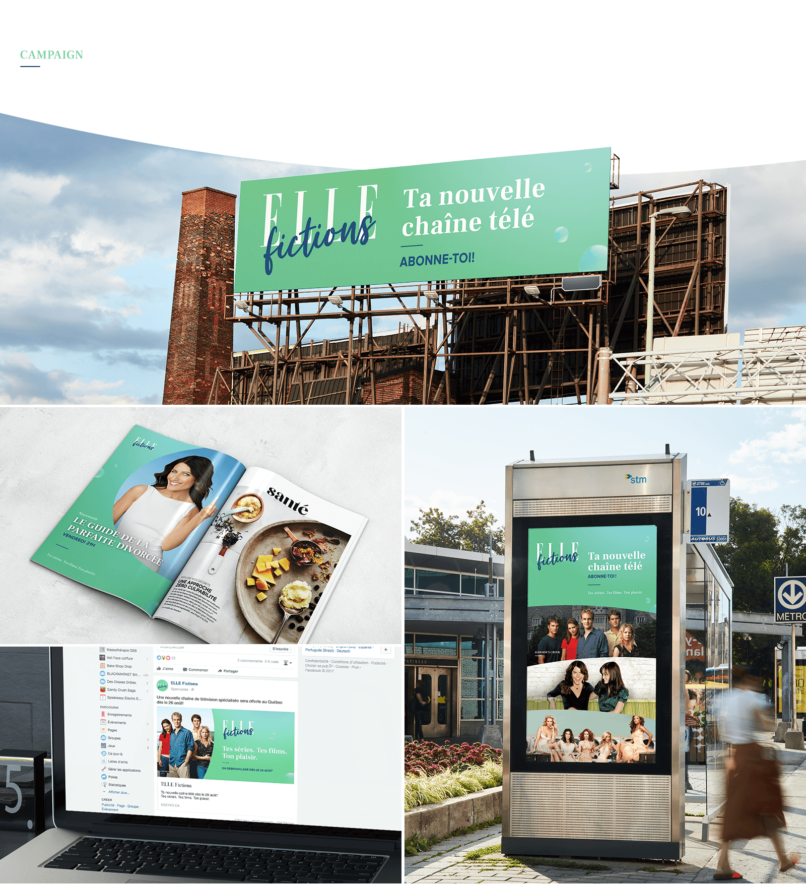 Créer l’image de marque de la chaîne, incluant le logo, les éléments en onde et publicitaire. Le design se devait d’être relaxant et féminin, mais il devait aussi savoir plaire aux hommes.
