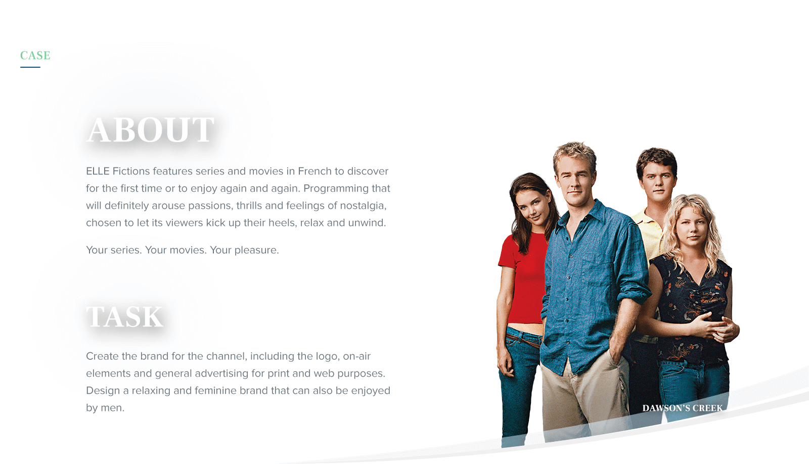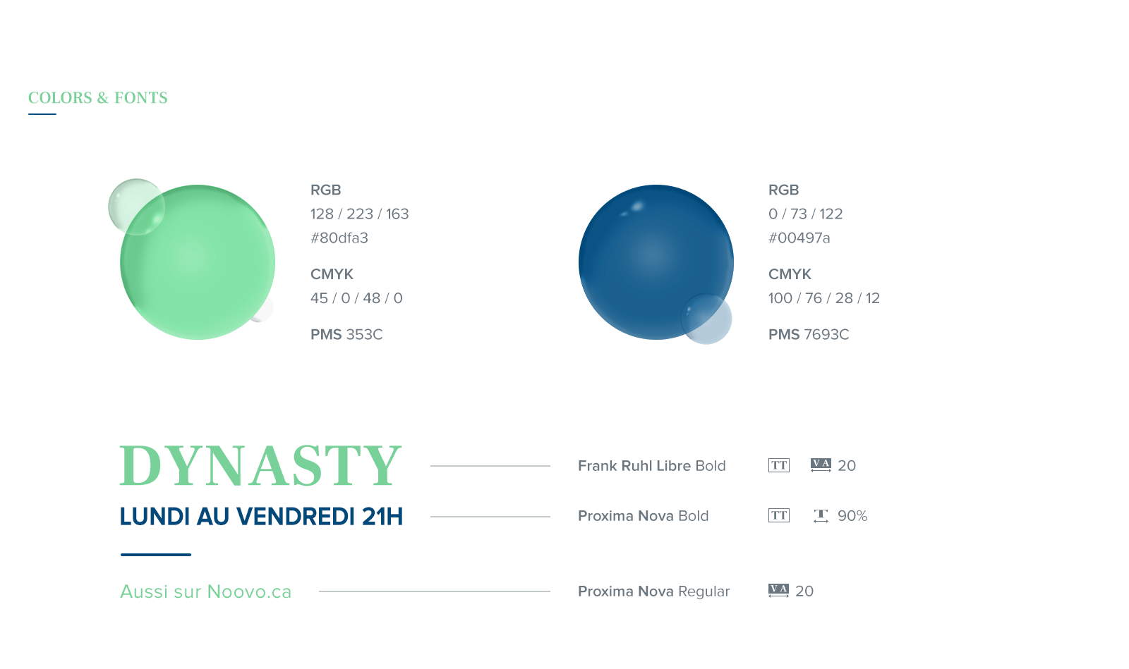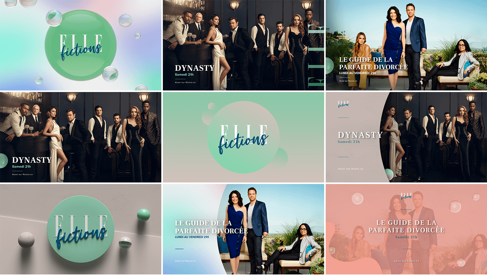 Créer l’image de marque de la chaîne, incluant le logo, les éléments en onde et publicitaire. Le design se devait d’être relaxant et féminin, mais il devait aussi savoir plaire aux hommes.