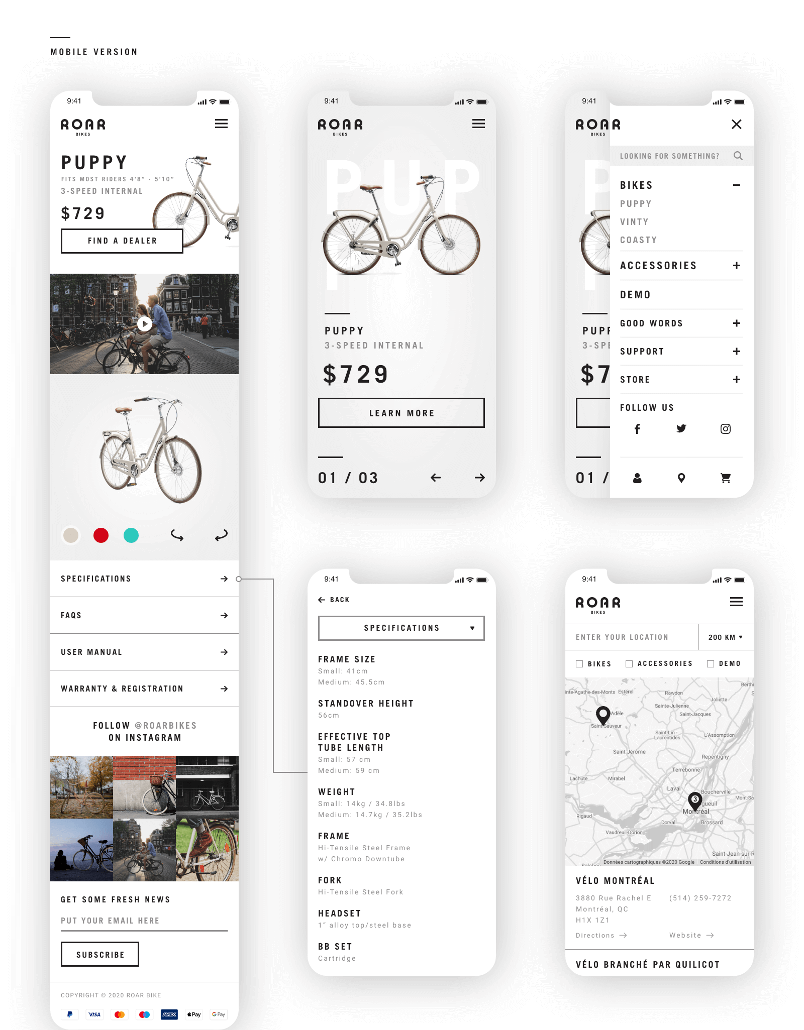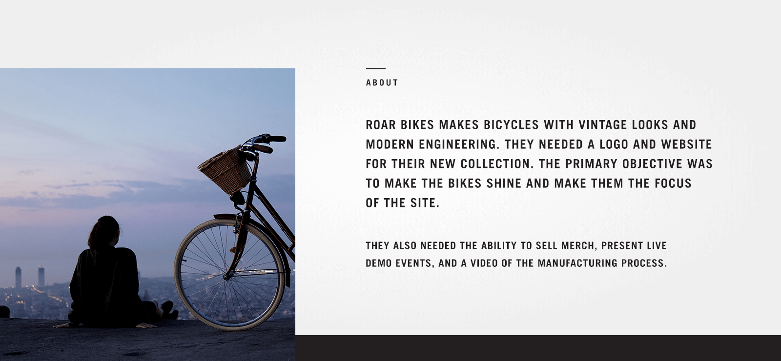 Roar Bikes fabrique des vélos avec un look vintage et une ingénierie moderne. Le mandat était de créer un nouveau logo et un site web pour annoncer leur nouvelle collection.